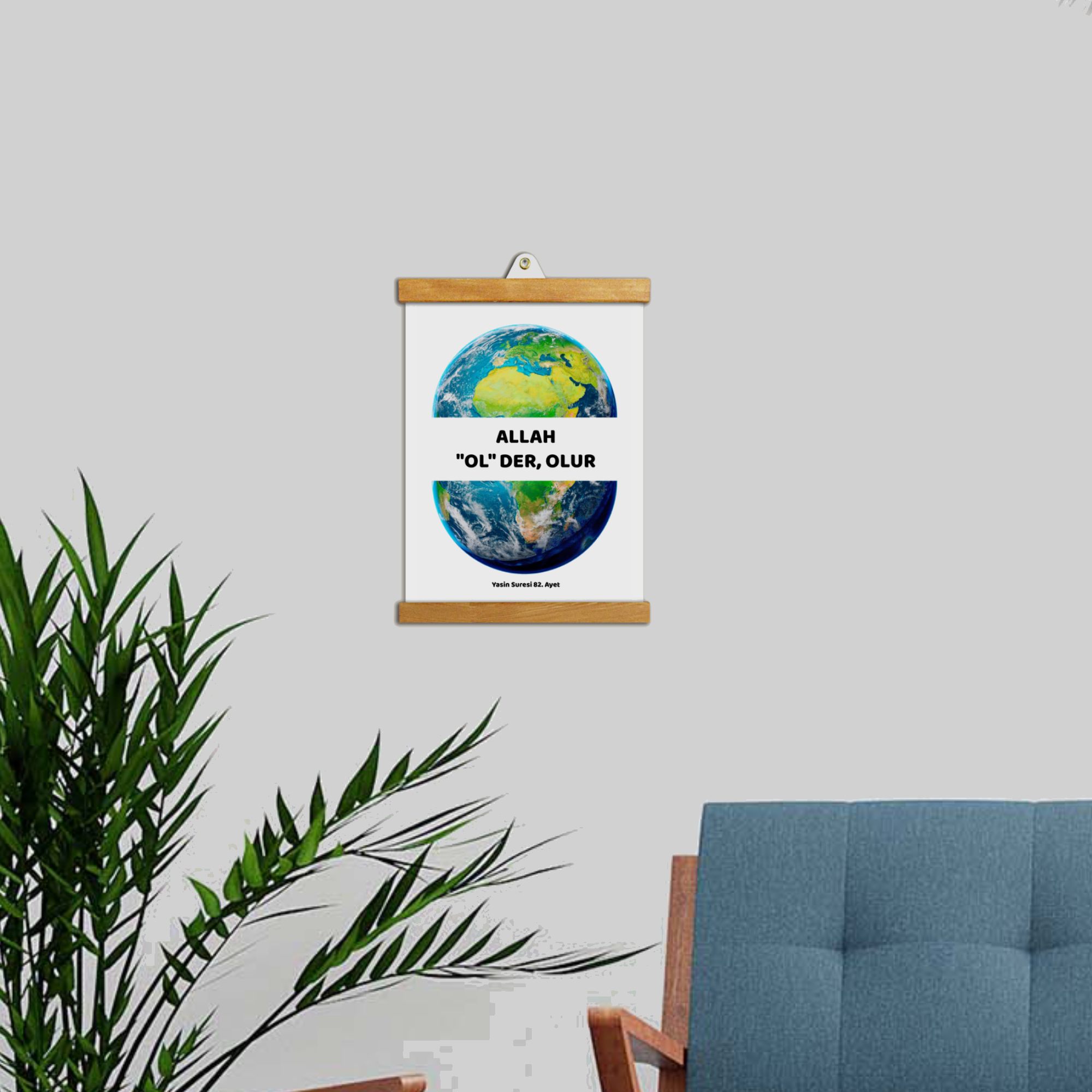 “Allah Ol Der Olur” yazılı bu tablo; tevekkül, sabır ve teslimiyet duygusunu mekâna taşıyan sade bir tasarıma sahiptir.