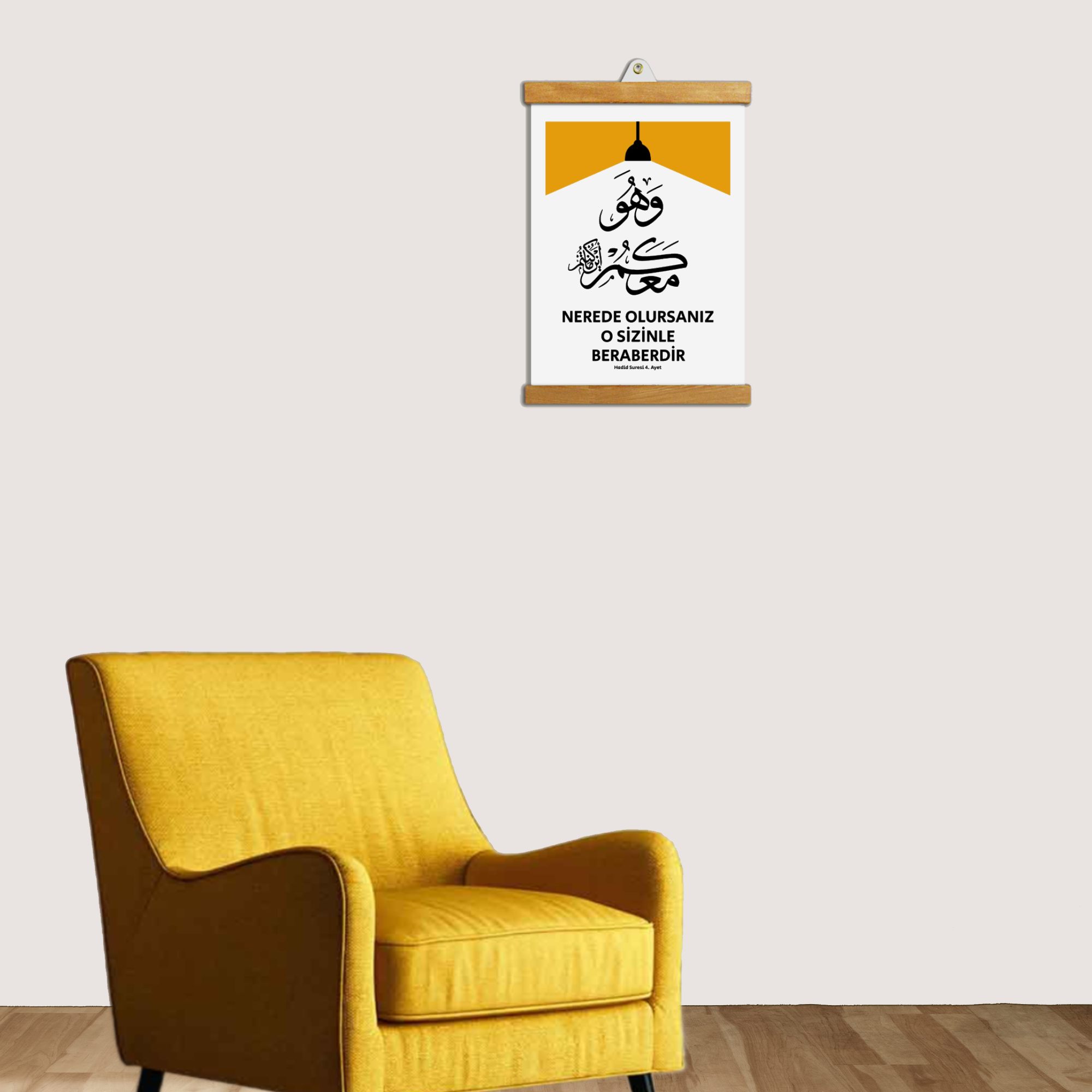 Allah Sizinle Beraberdir Tablo, tevekkül, sabır ve teslimiyet duygusunu mekâna taşıyan sade bir tasarıma sahiptir.