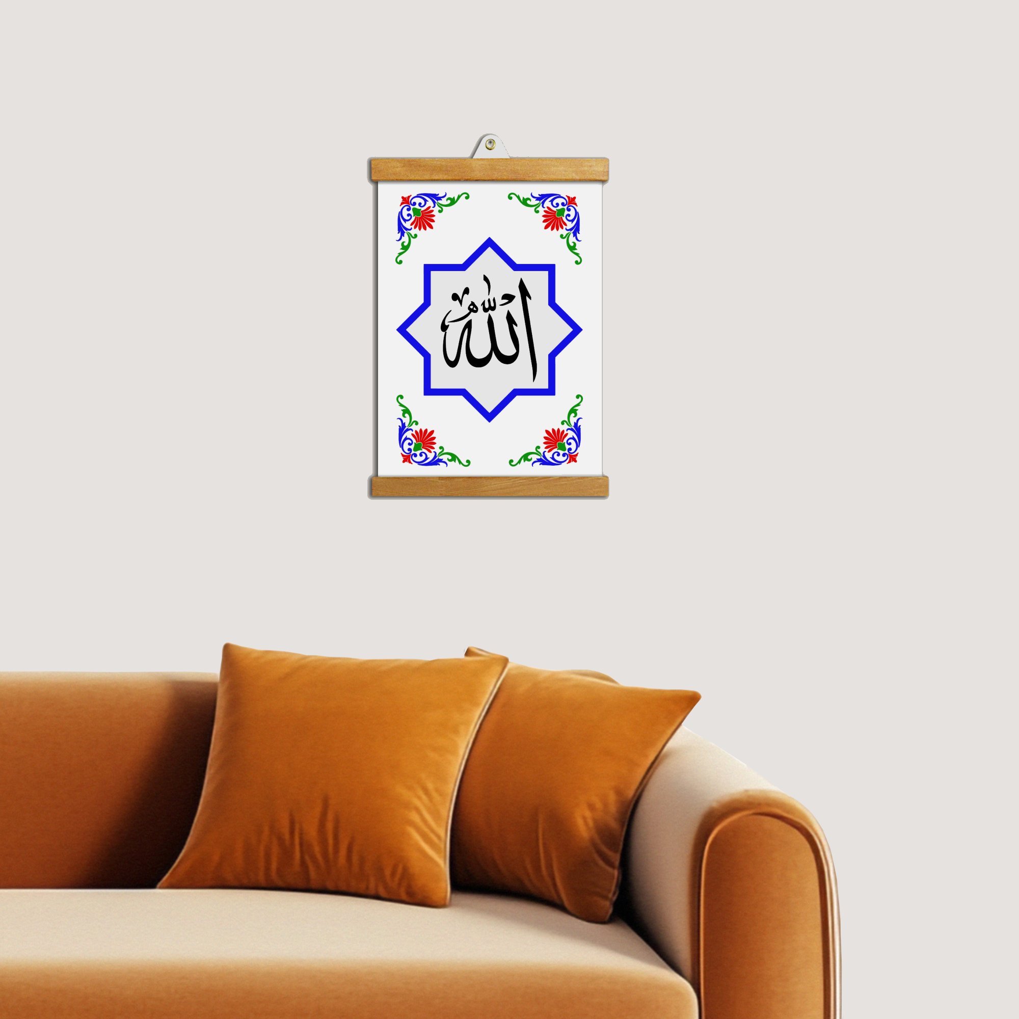 Allah Lafzı Yazılı Mavi Yıldızlı Duvar Tablosu