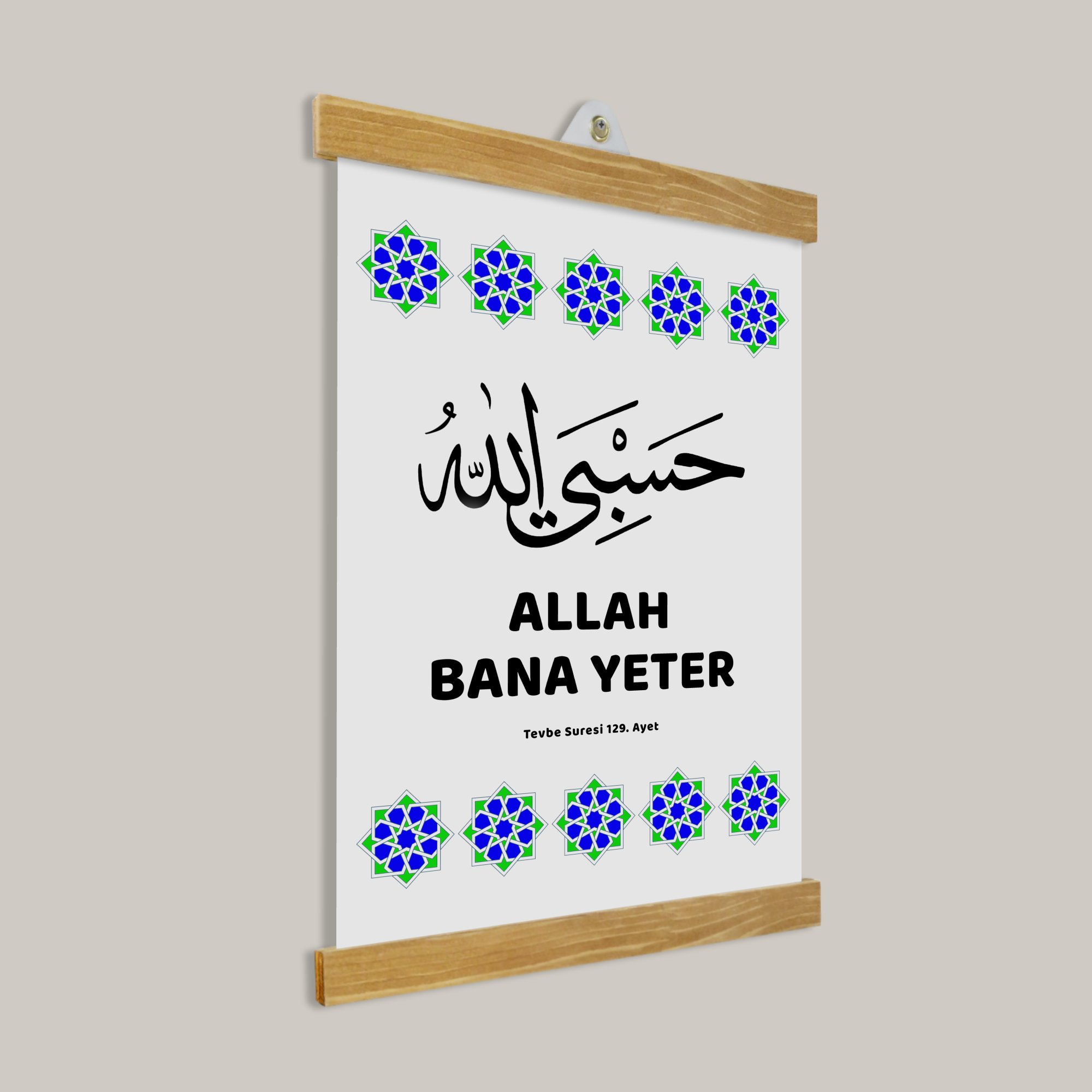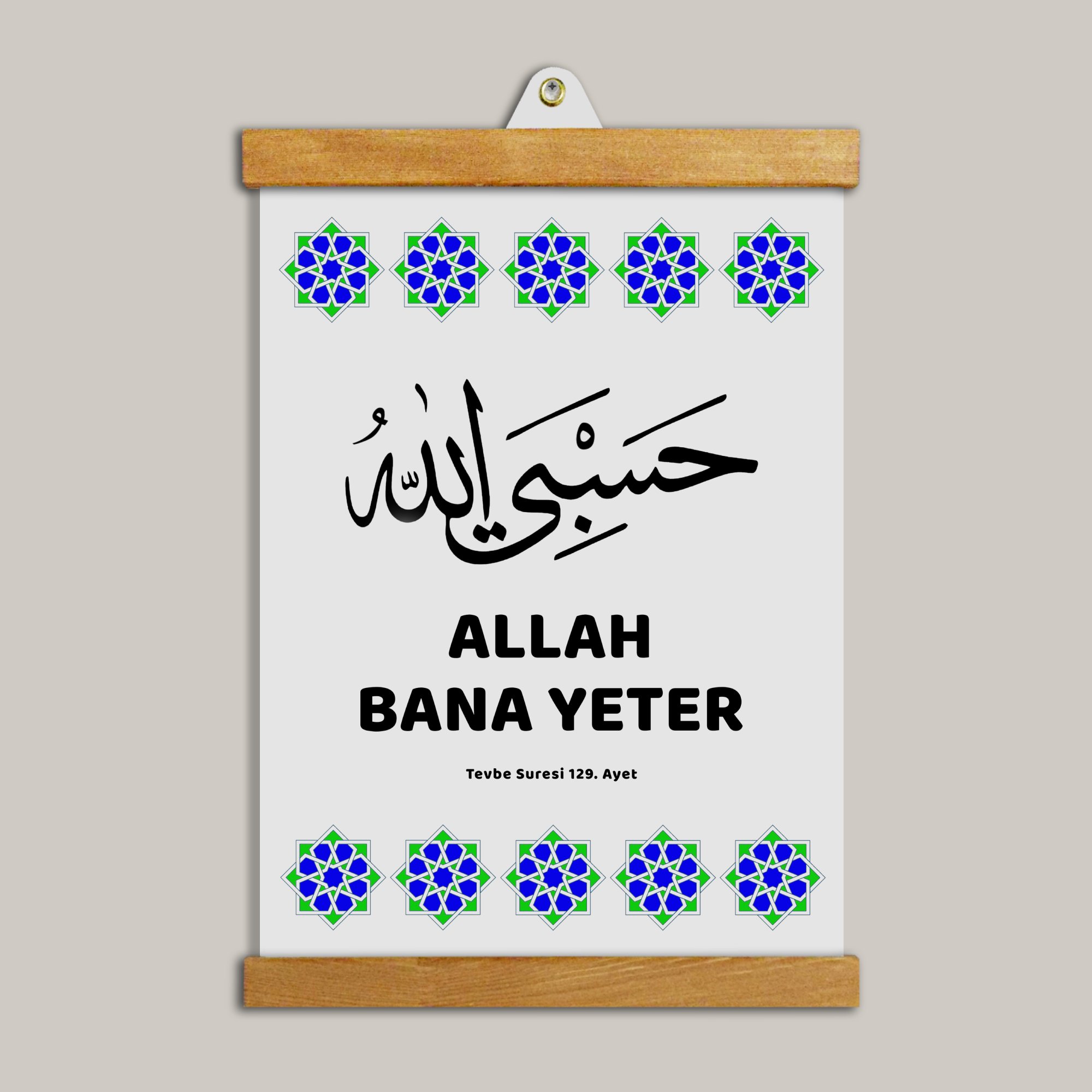 “Hasbiyellah” Ayet tablo, sade ve huzur veren tasarımıyla ev ve çalışma alanları için manevi bir dokunuş sunar.