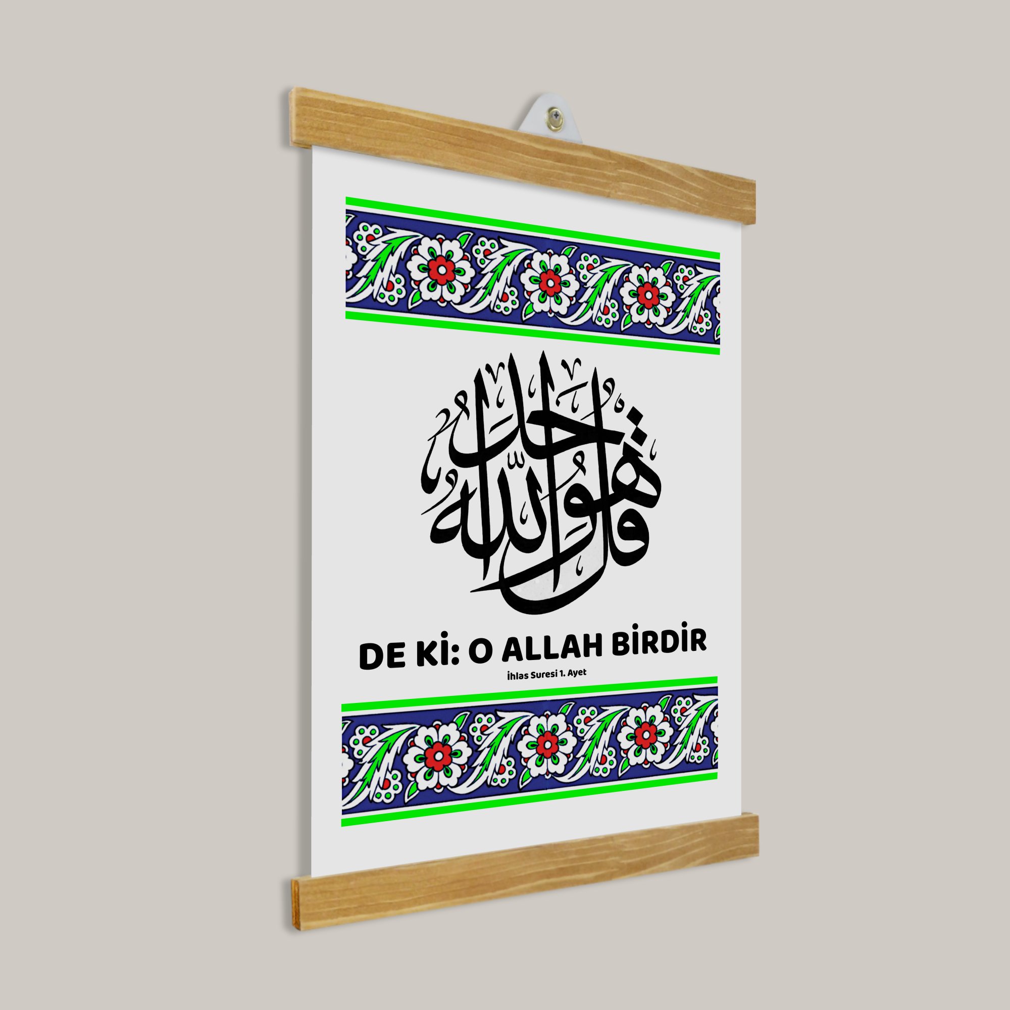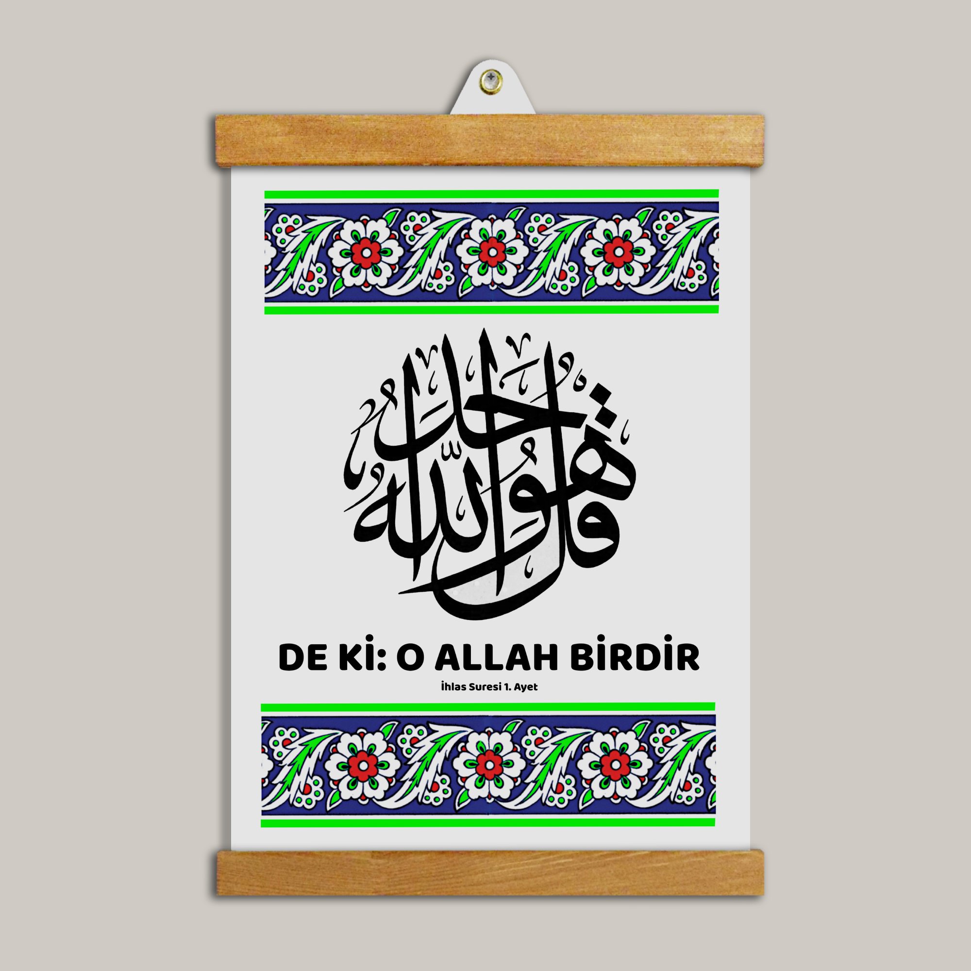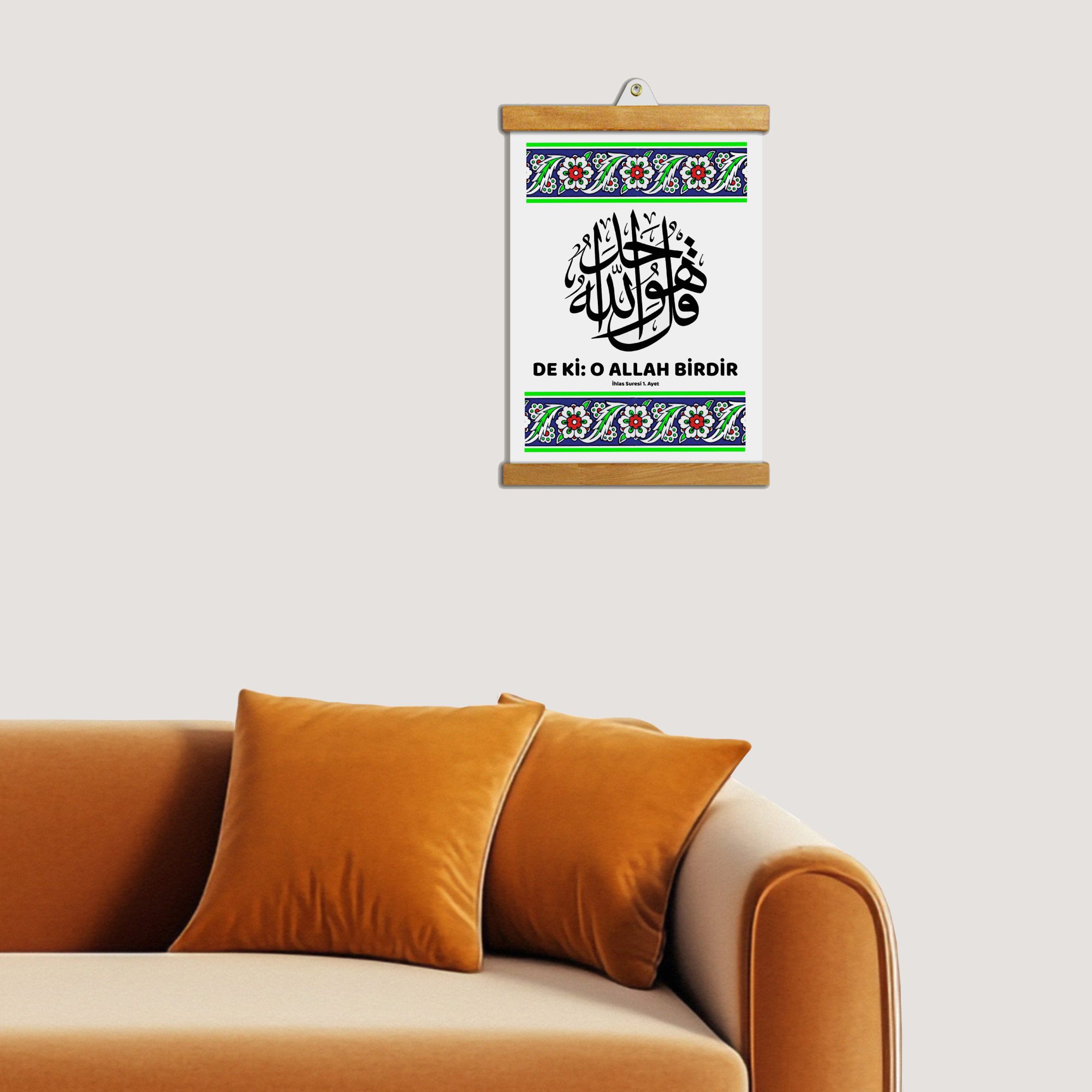 İhlas Suresi Tablo, tevekkül, sabır ve teslimiyet duygusunu mekâna taşıyan sade bir tasarıma sahiptir.
