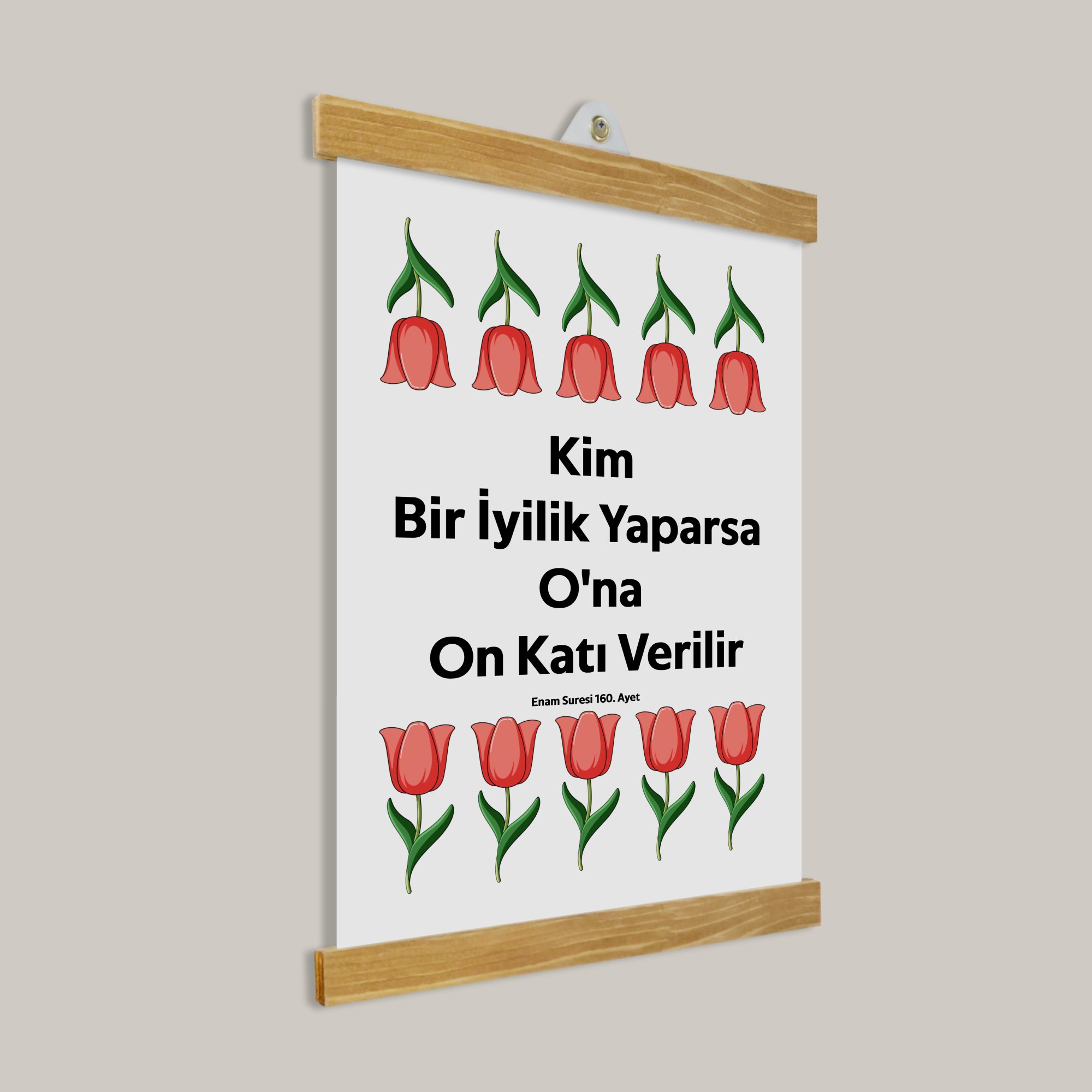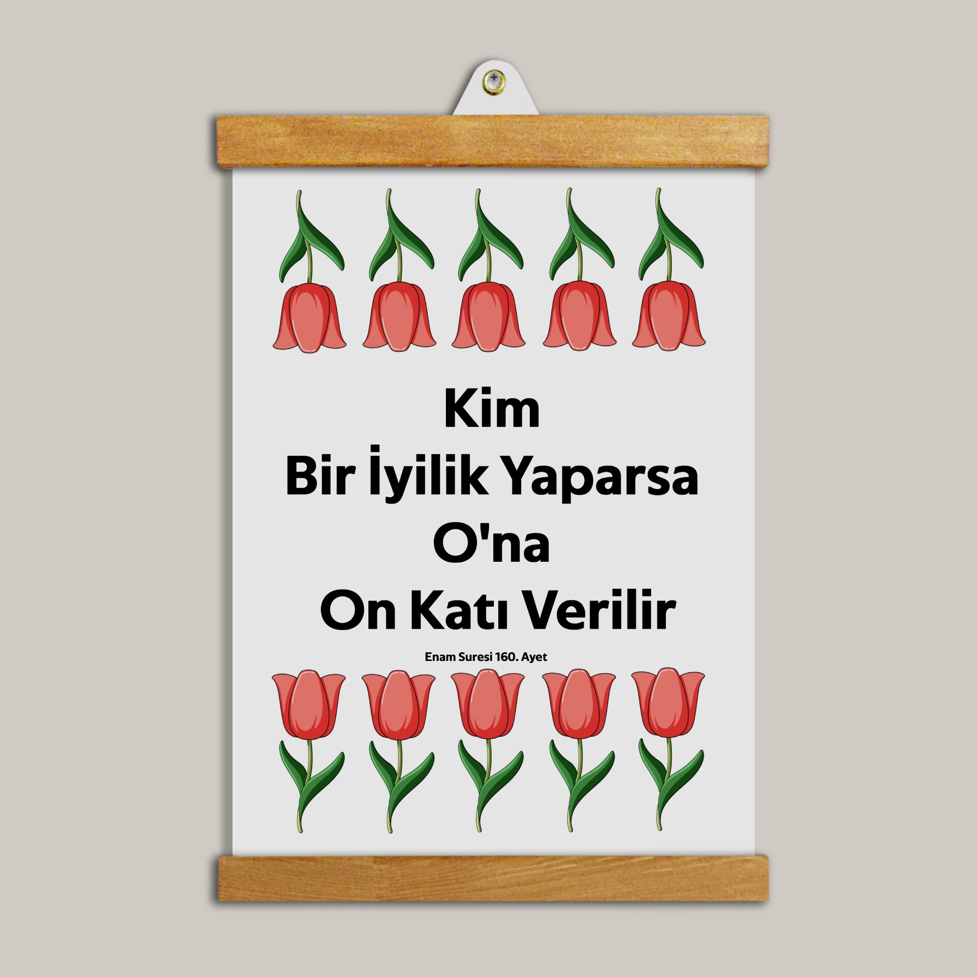 İyiliğin On Katı Ayeti Tablo, tevekkül, sabır ve teslimiyet duygusunu mekâna taşıyan sade bir tasarıma sahiptir.