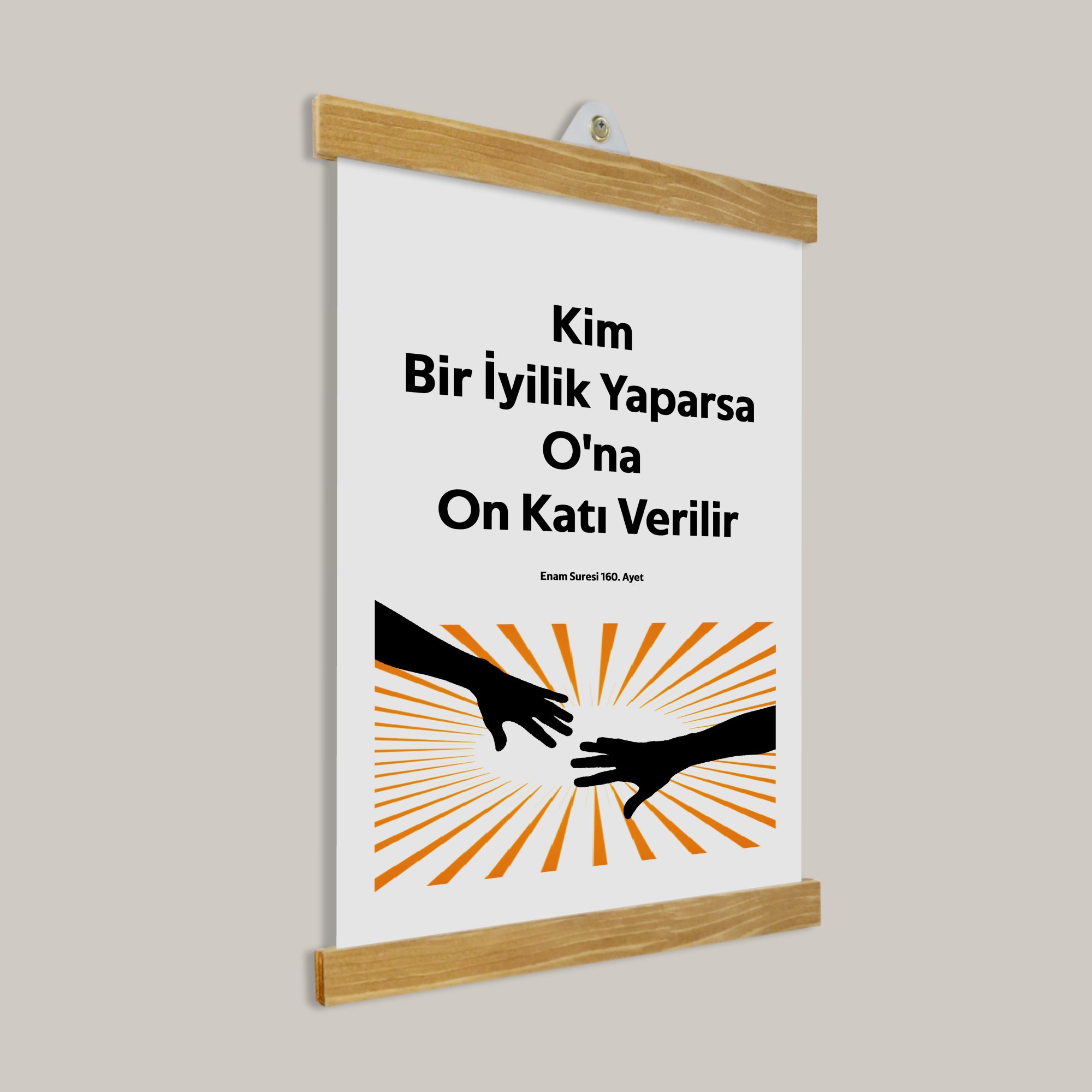 İyiliğin On Katı Ayeti Yazılı Tablo, sade ve huzur veren tasarımıyla ev ve çalışma alanları için manevi bir dokunuş sunar.