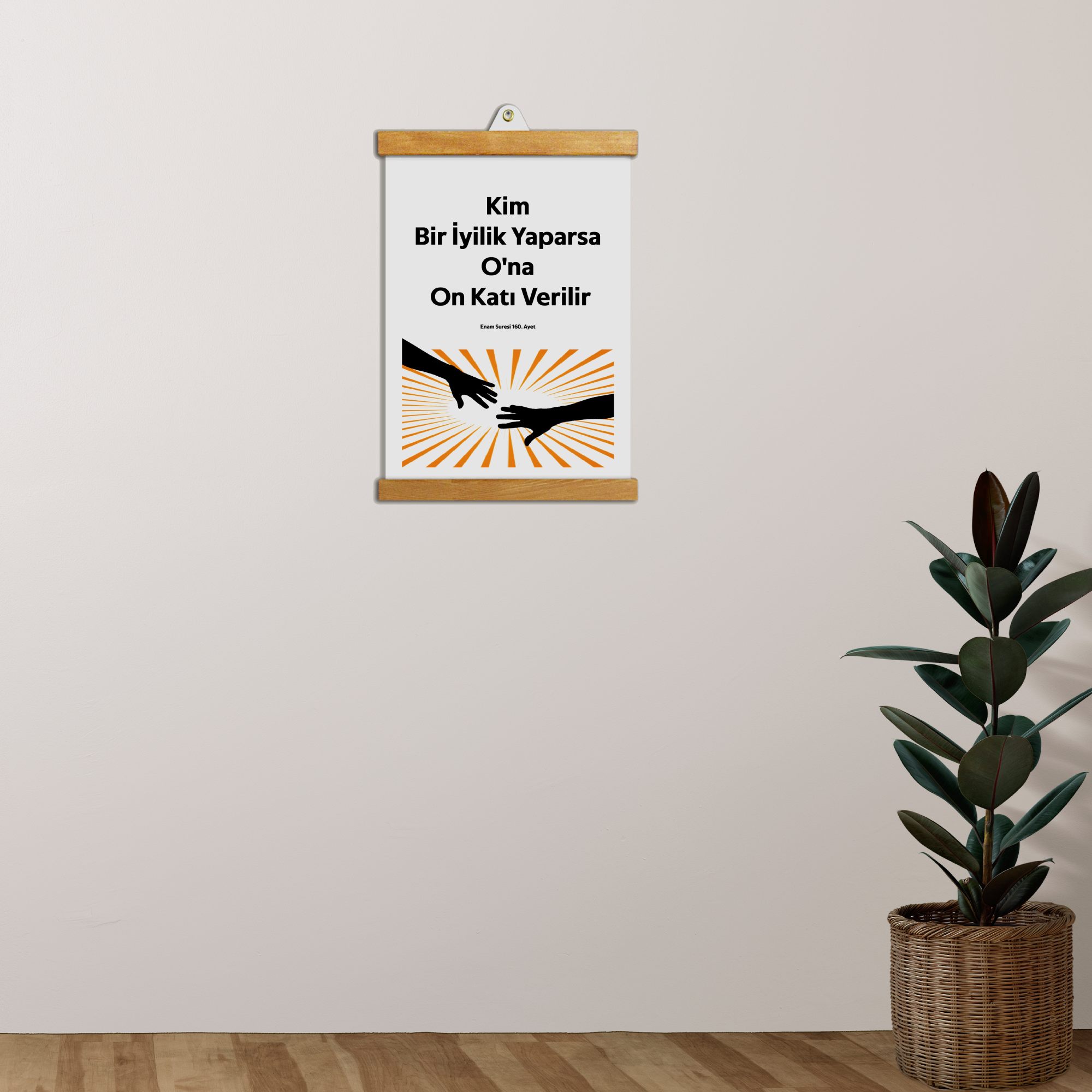 İyiliğin On Katı Ayeti Yazılı Tablo, tevekkül, sabır ve teslimiyet duygusunu mekâna taşıyan sade bir tasarıma sahiptir.