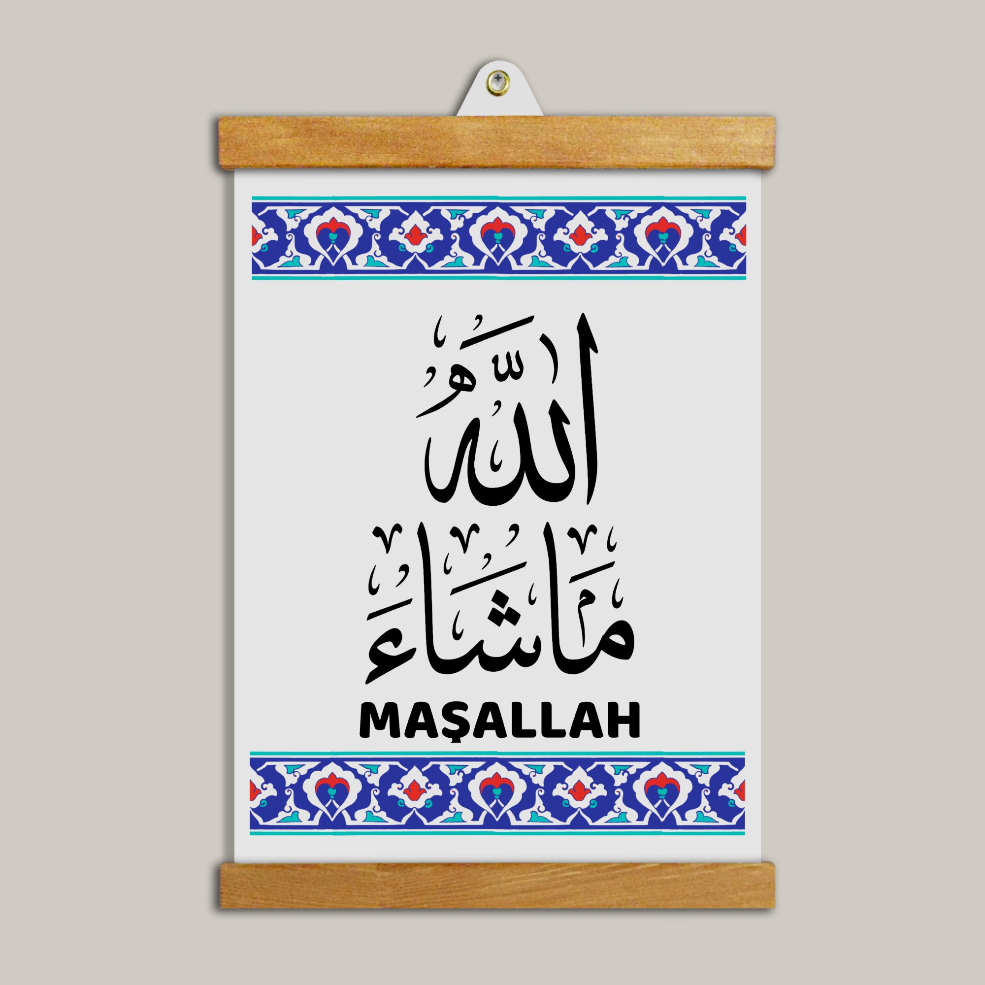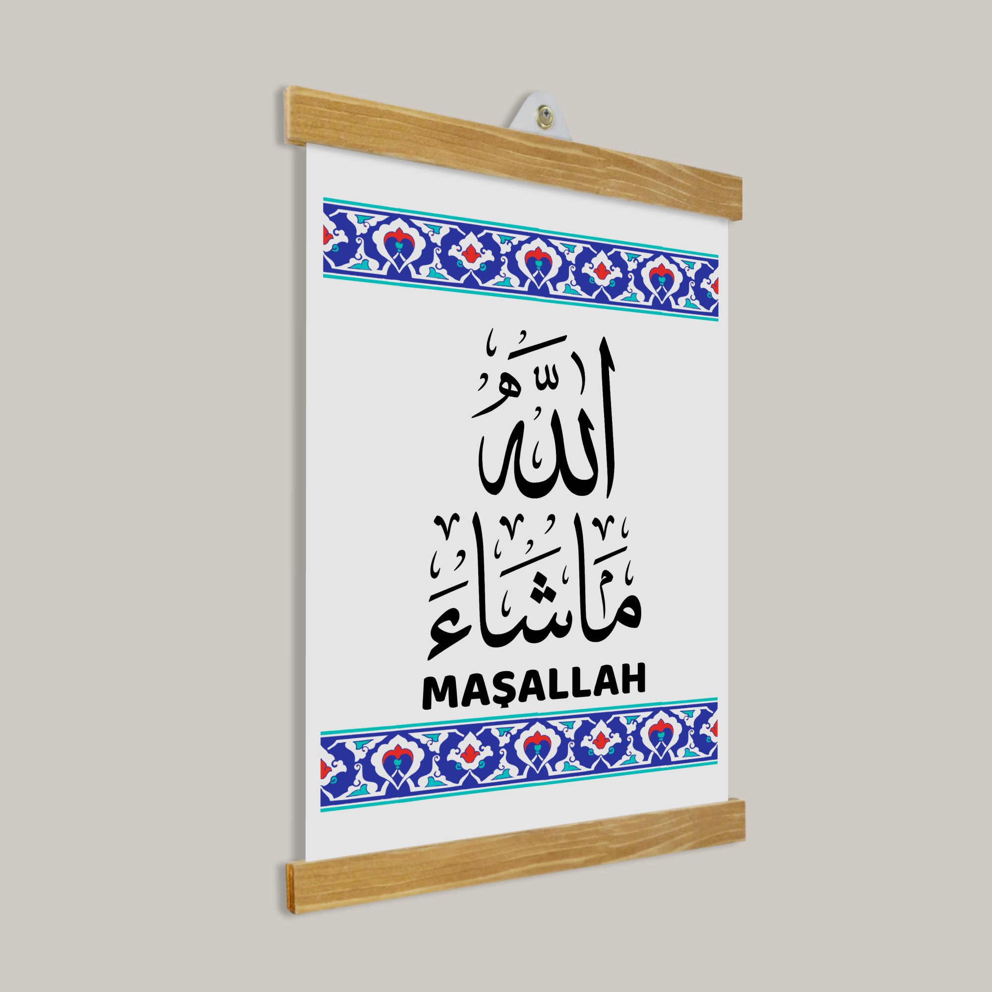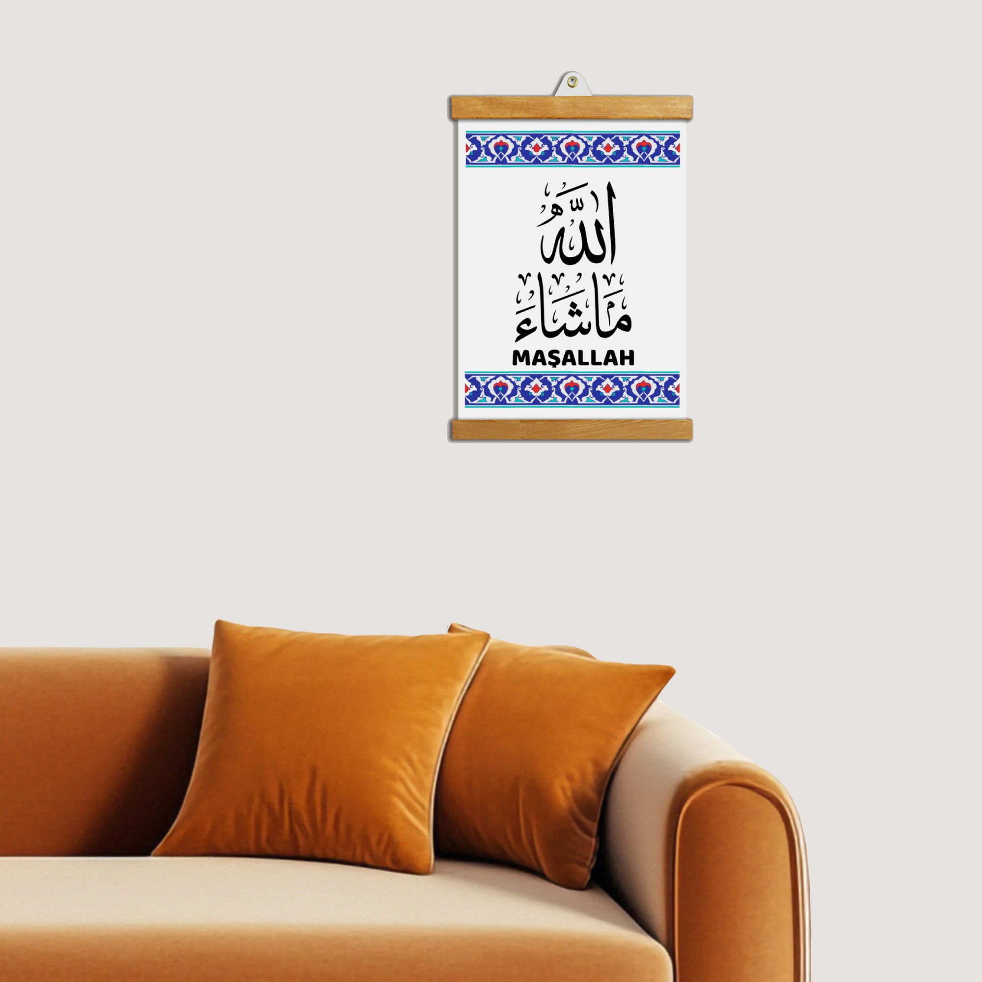 Maşallah Tablo, sade ve huzur veren tasarımıyla ev ve çalışma alanları için manevi bir dokunuş sunar.