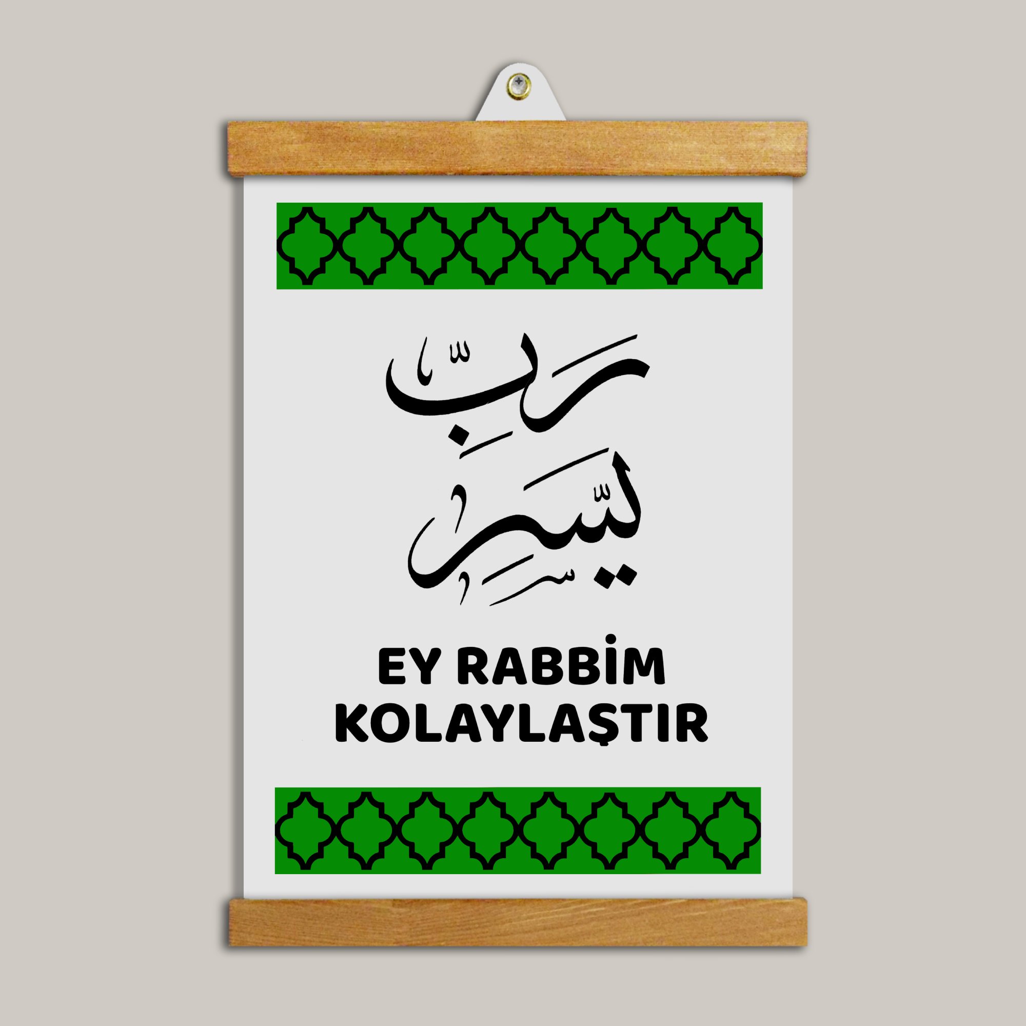 Rabbi Yessir Duası Tablo, tevekkül, sabır ve teslimiyet duygusunu mekâna taşıyan sade bir tasarıma sahiptir.