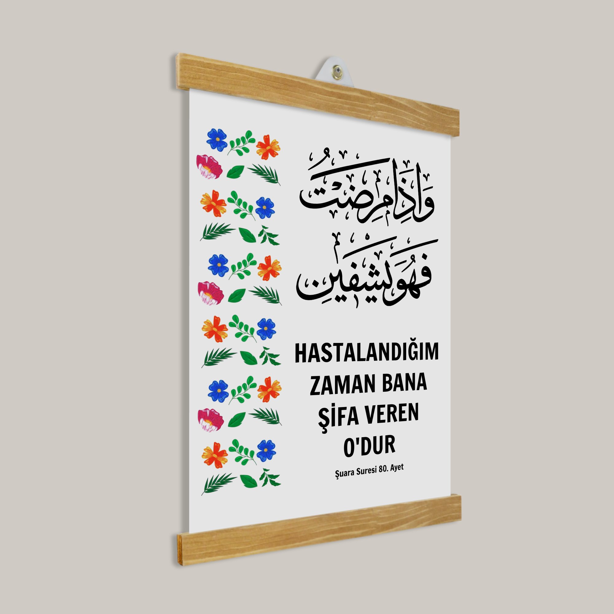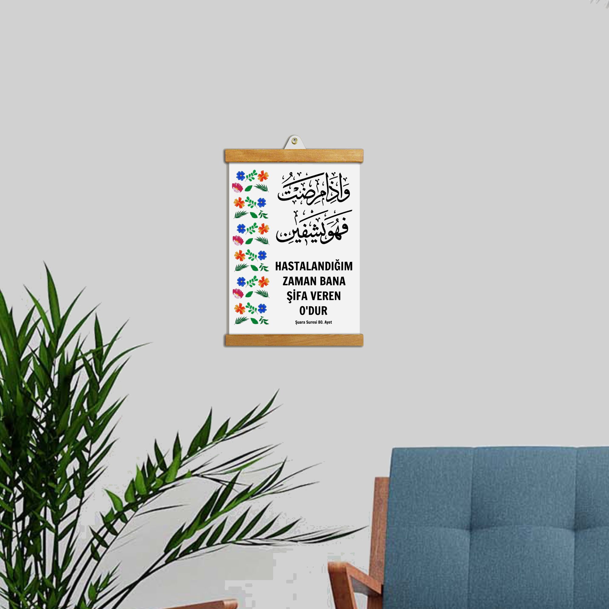 Şifa Veren Allah’tır Tablo, tevekkül, sabır ve teslimiyet duygusunu mekâna taşıyan sade bir tasarıma sahiptir.