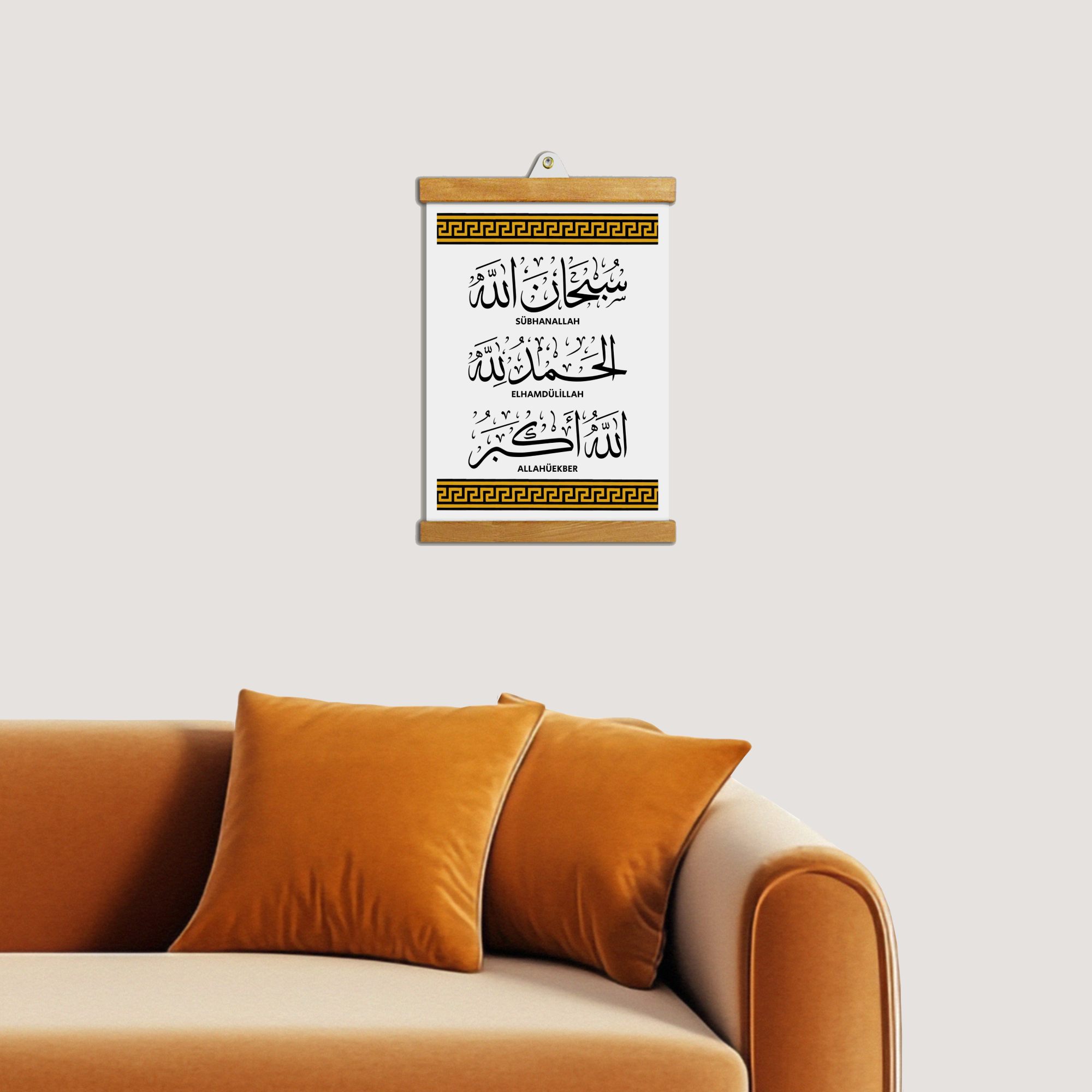 Subhanallah Tablo, tevekkül, sabır ve teslimiyet duygusunu mekâna taşıyan sade bir tasarıma sahiptir.